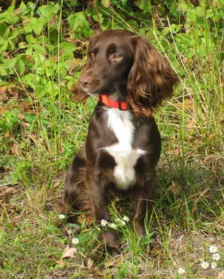 Blaze - Saracen Glory Bound MH (Dardnell Denby of Windmillwood MH, field trial pointed x FC Elan Rosie MH) owner: Ann Clements |